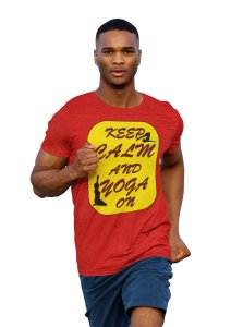 Keep calm and yoga on - Red - Comfortable Yoga T-shirts for Yoga Printed Men's T-shirts (Small, Red)