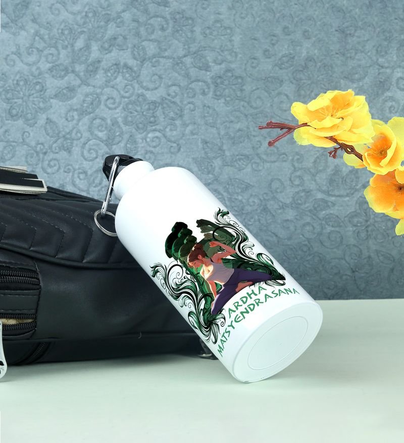Ardha Matsyendrasana Yoga Twist Design Aluminium Printed Sipper Bottle 600ml