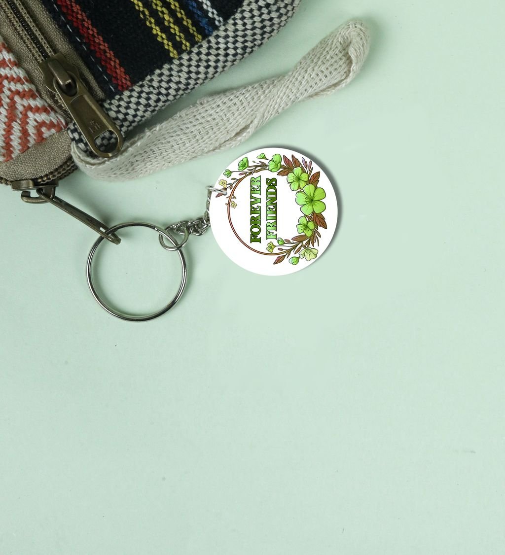 Artistic Friendship Circle in Green Blooms: Printed Round Keychain Pack of 2