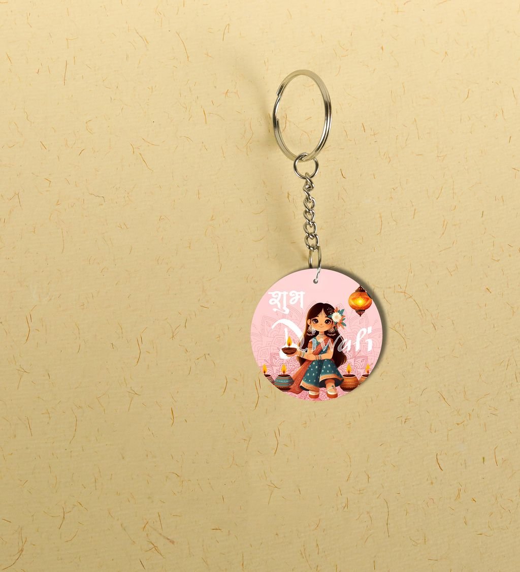 Auspicious Lamps Festival Diwali Printed Round Keychain Pack of 2