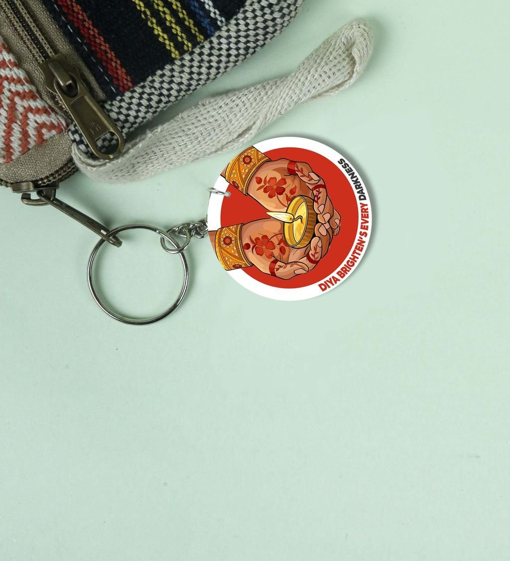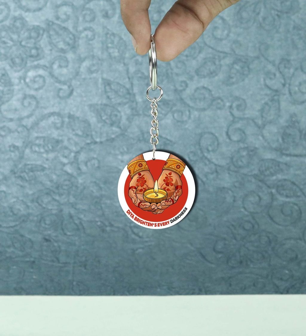 Celebrate Inner Light with Starry Diwali Design Printed Round Keychain Pack of 2