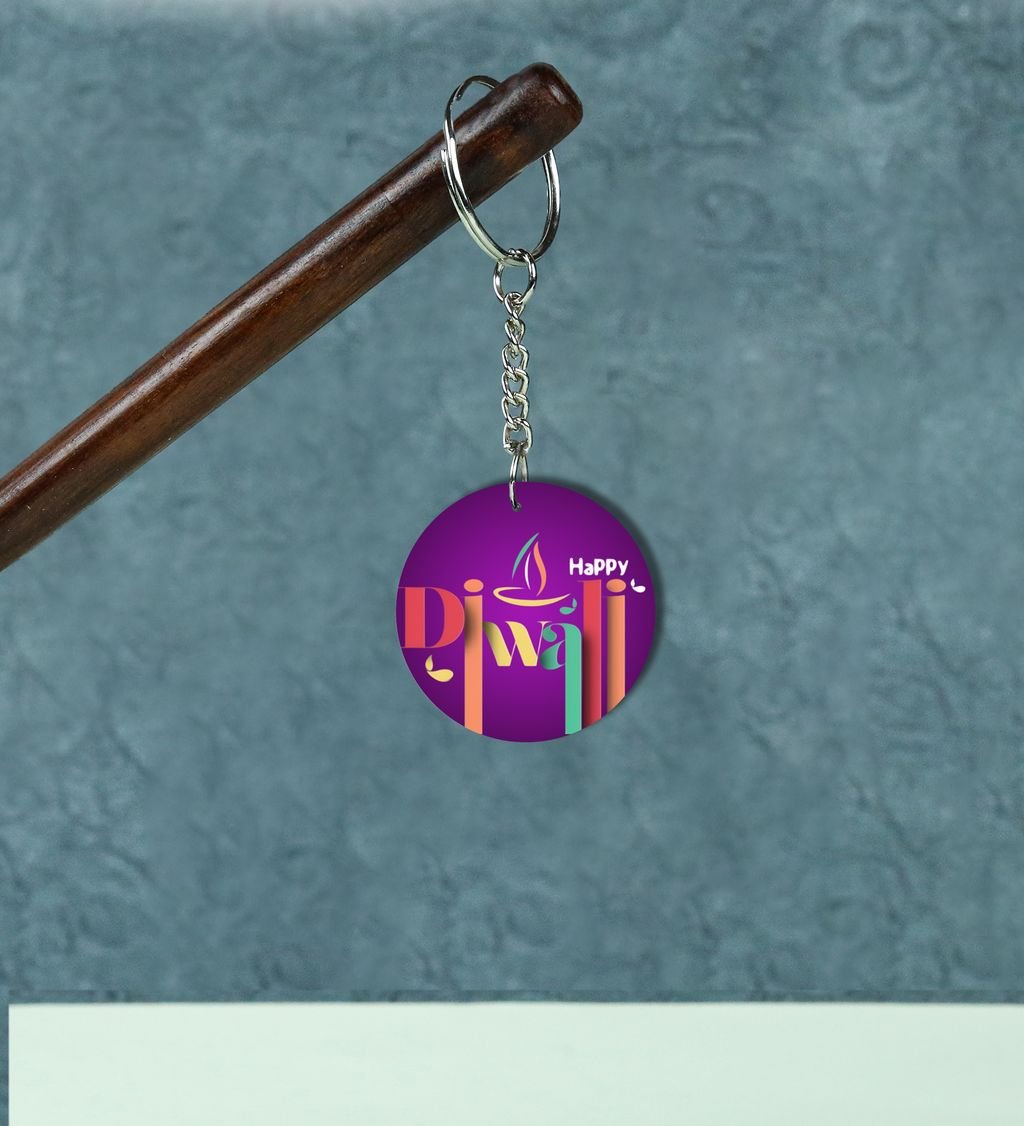 Colorful Lights Shine Diwali Printed Round Keychain Pack of 2