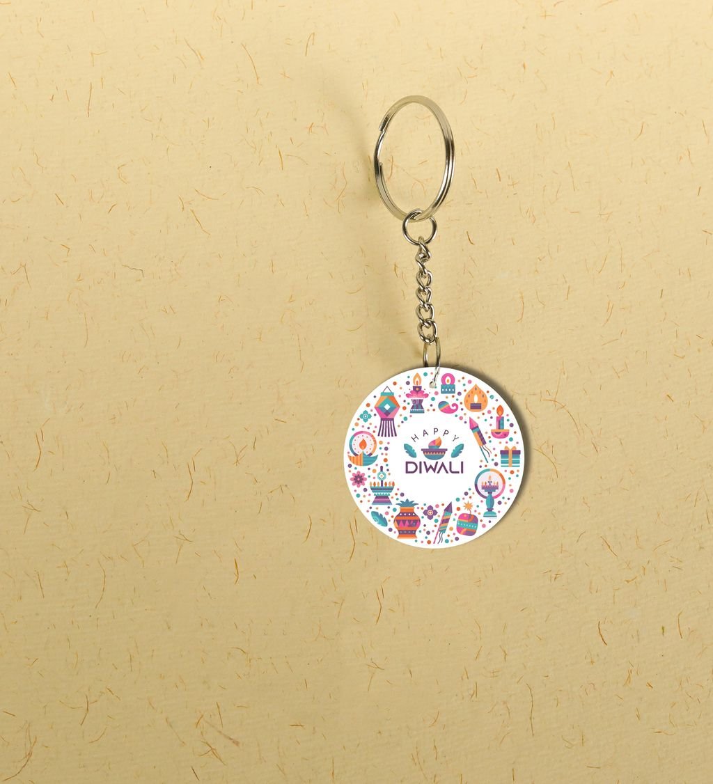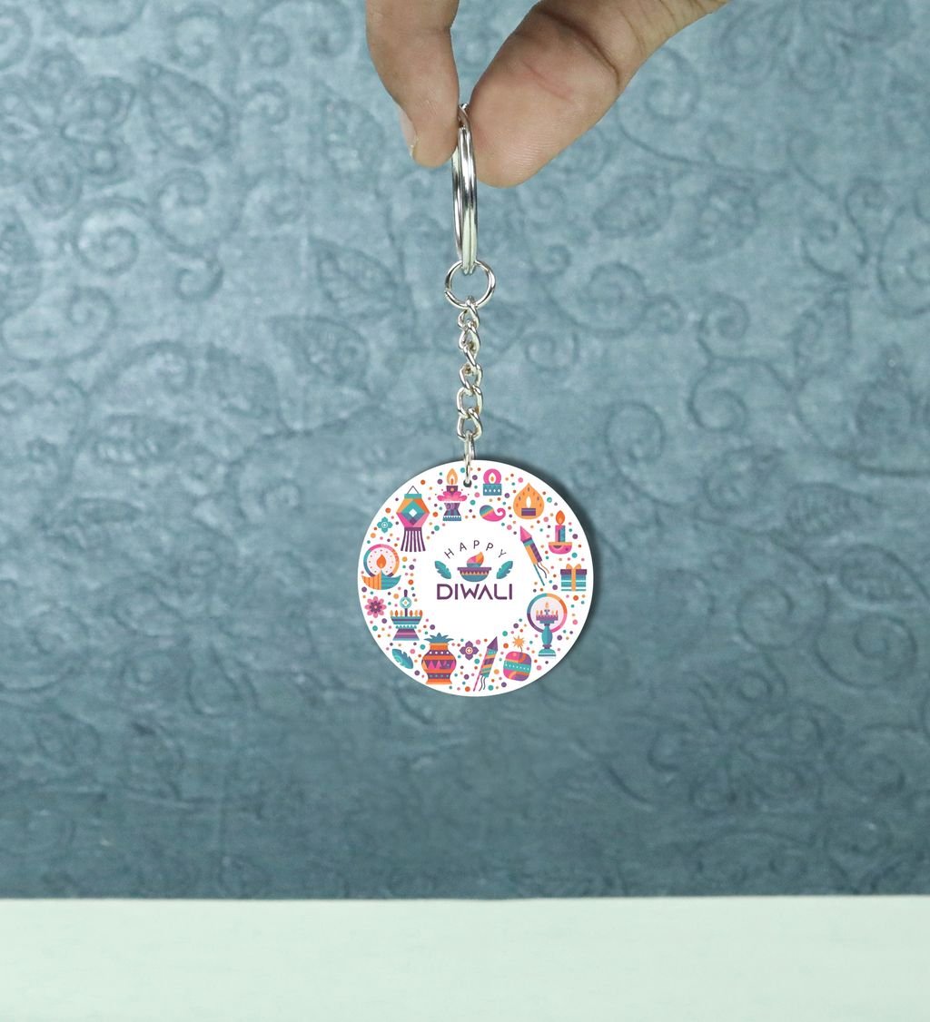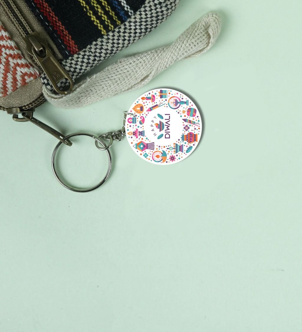 Decorative Lamps Celebration Diwali Printed Round Keychain Pack of 2