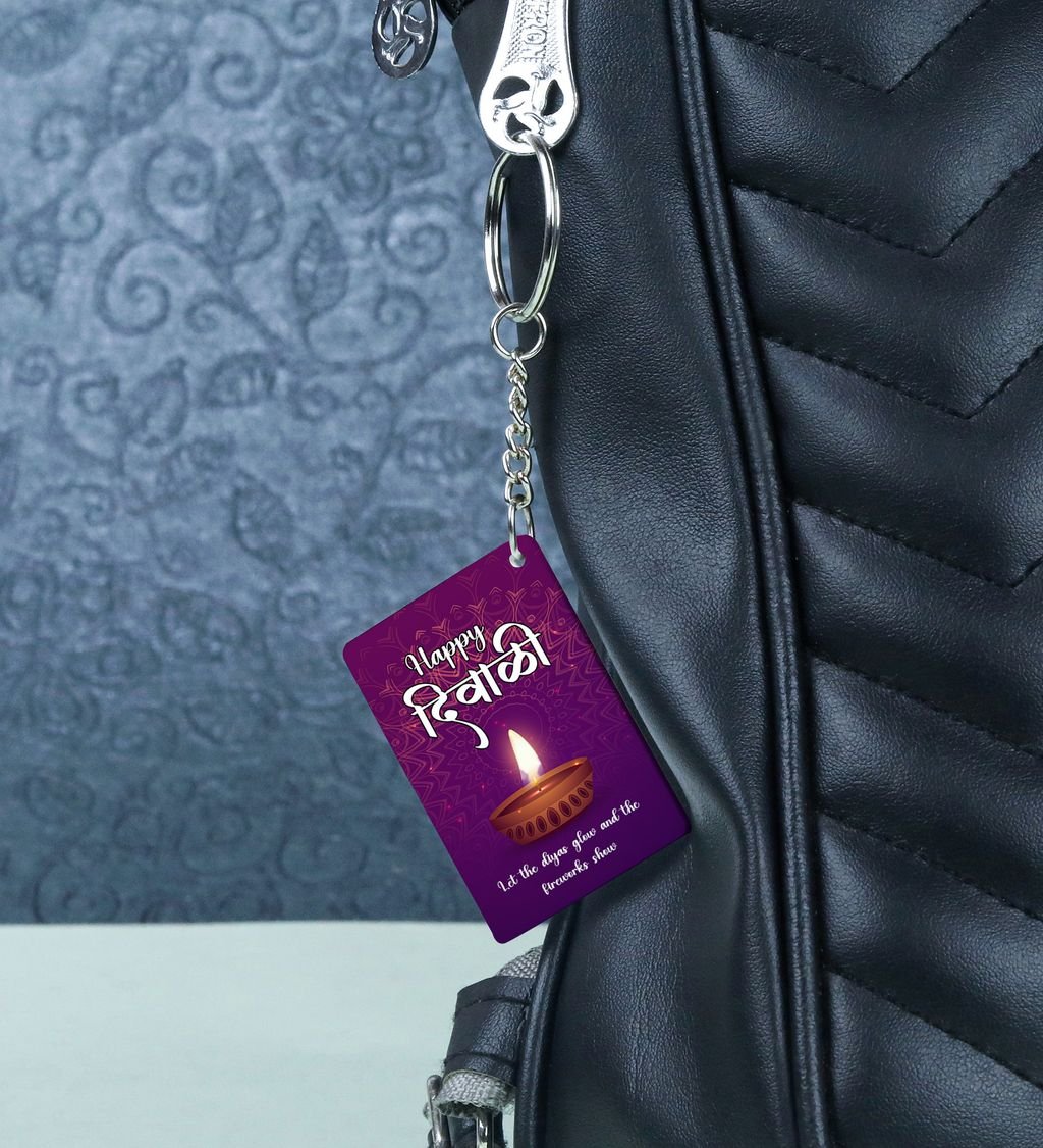 Celebrate the spirit of Deep Utsav with this vibrant rectangular keychain, inspired by the radiant glow of Diwali lamps. Featuring festive colors and intricate patterns, it adds a touch of joy and tradition to your everyday carry. Lightweight and durable, it's perfect for gifting or keeping the festive vibes close all year round. Carry a piece of the festival of lights wherever you go.