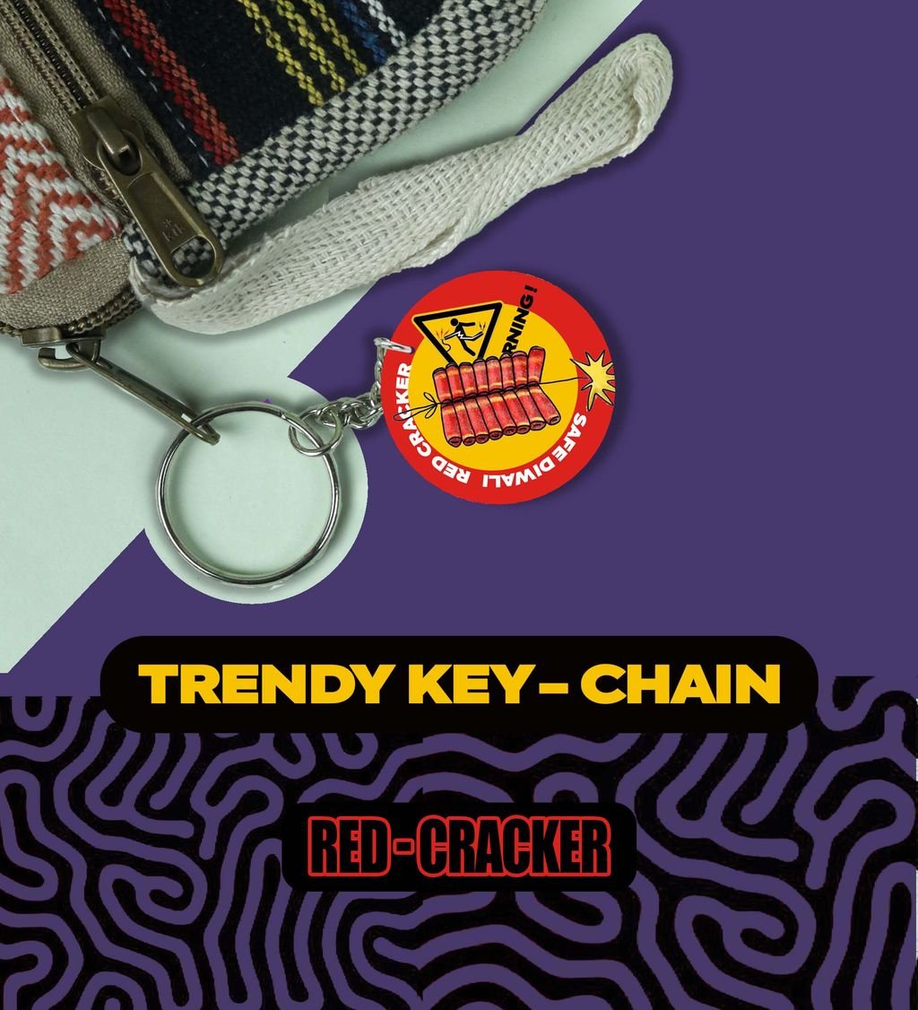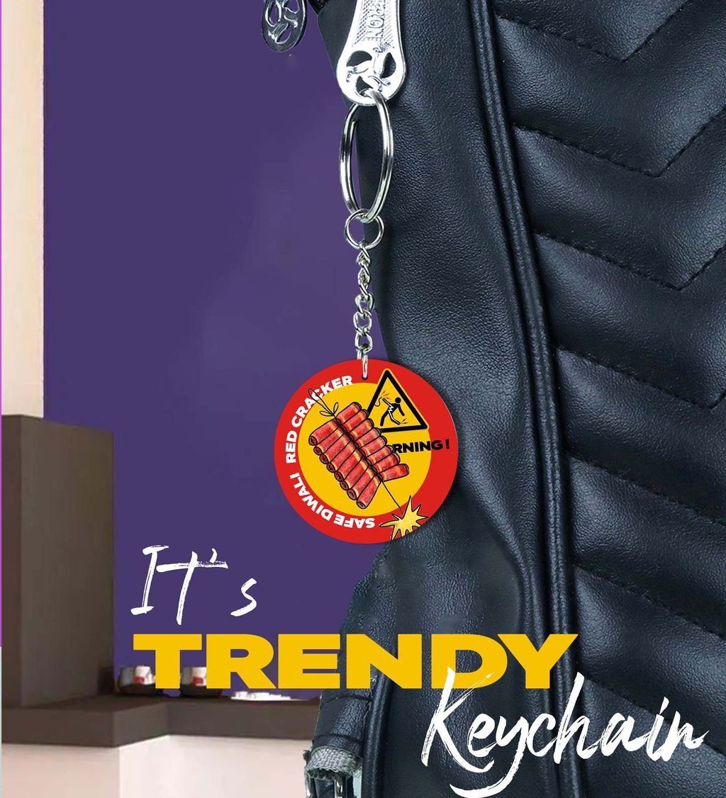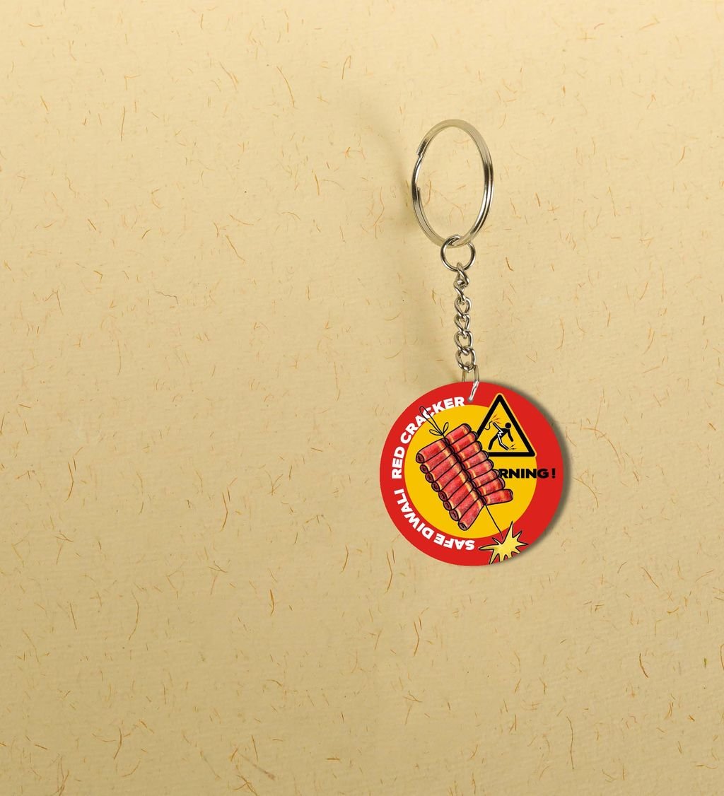 "Diwali Magic in Your Hands: Big Red Pataka Keychain for Loved Ones - Printed Round Keychain Pack of 2"