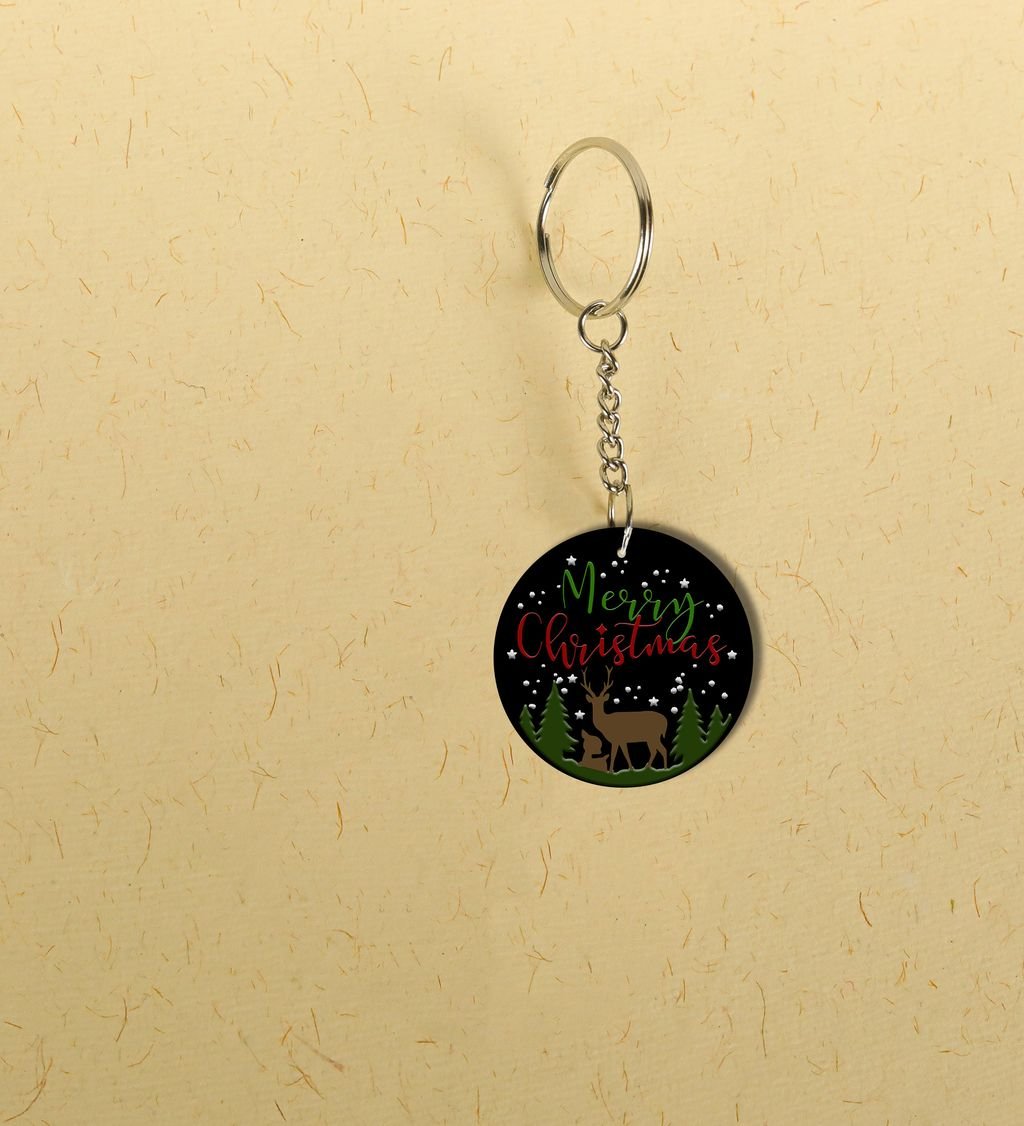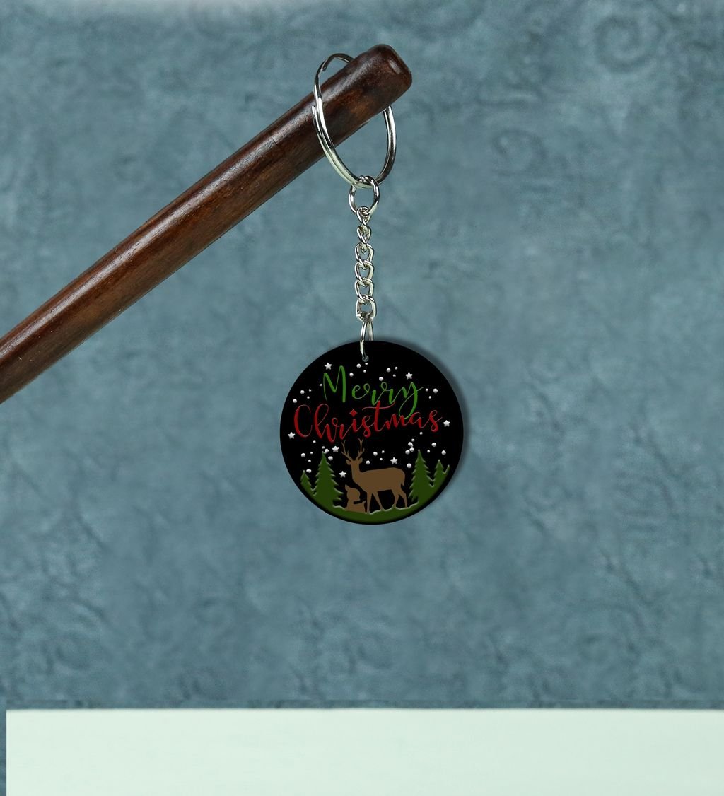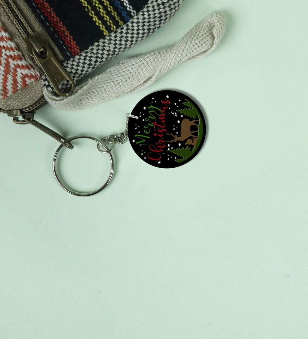 Experience the Magic of Winter Wonder with Christmas Printed Round Keychain Pack of 2