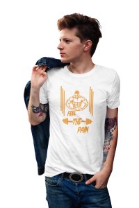 Feel The Pain, Straight Lines Round Neck Gym Tshirt (Orange) (White Tshirt) - Clothes for Gym Lovers - Suitable for Gym Going Person - Foremost Gifting Material for Your Friends and Close Ones