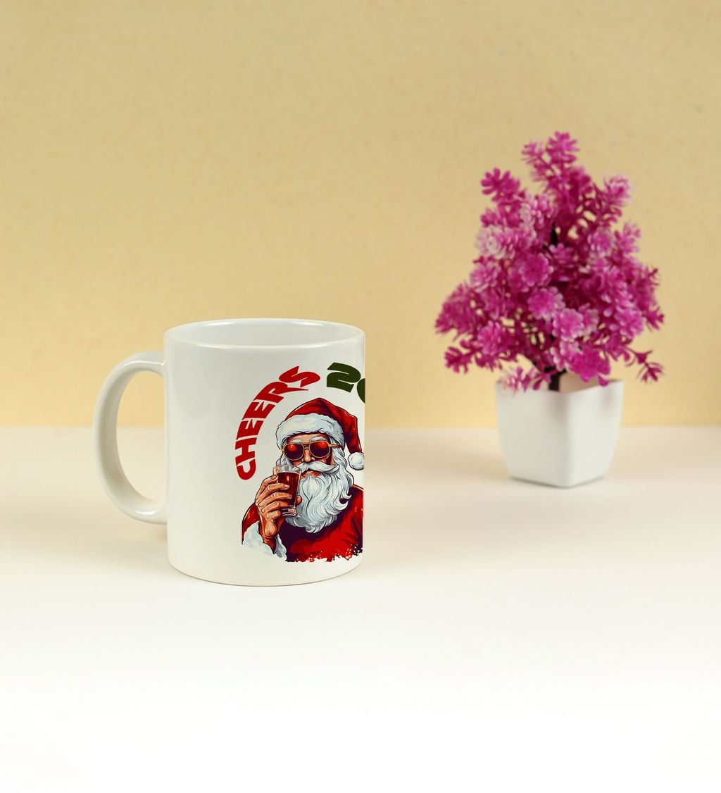 Festive Santa Cheers 2025 Holiday Celebration Printed Coffee Mug 250ml