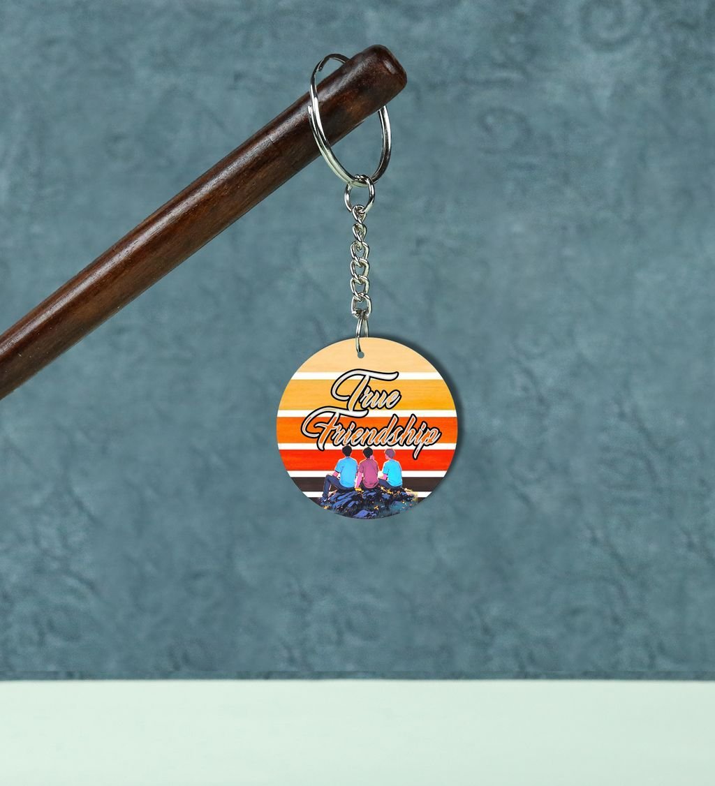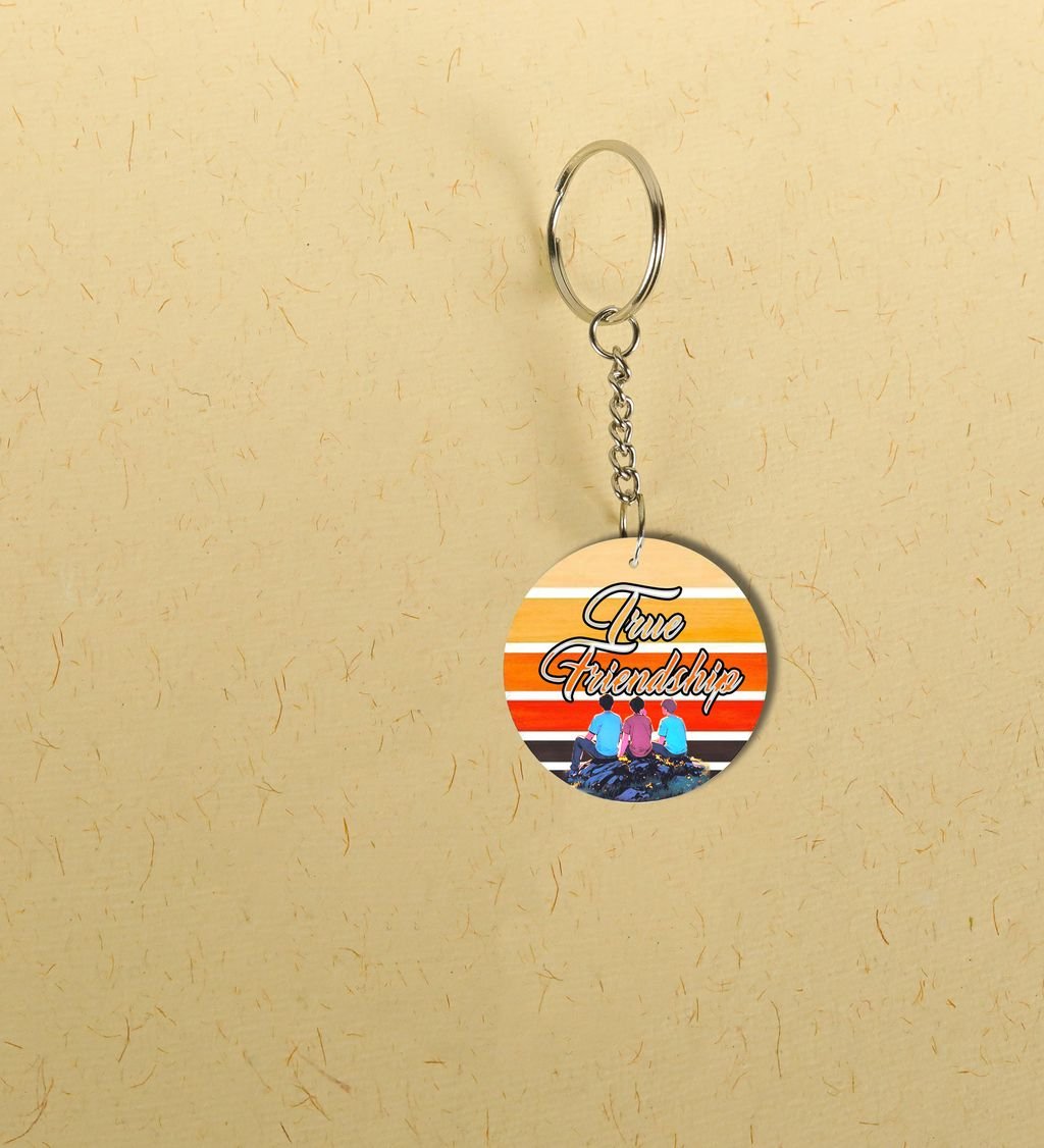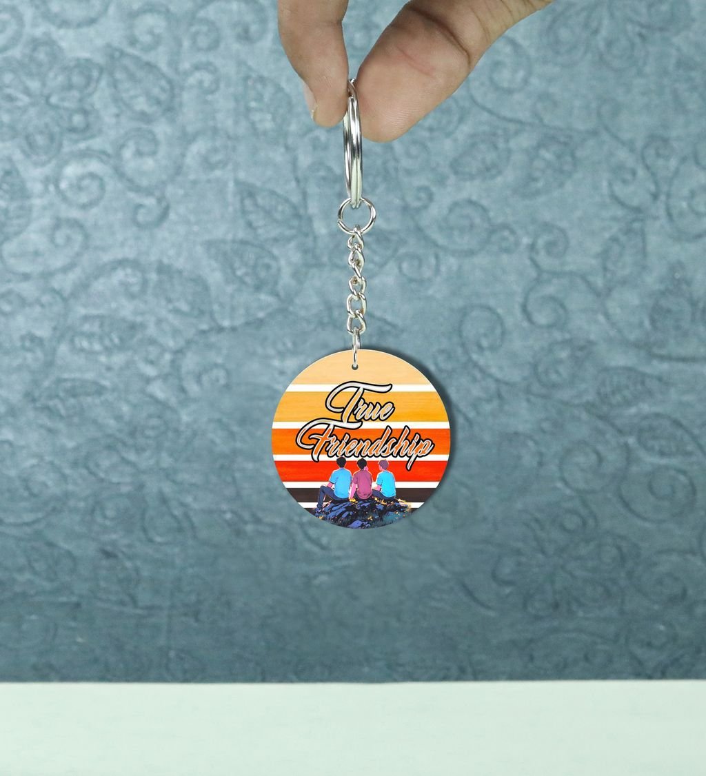 Friendship Forever Sitting on Sunset Rocks: Printed Round Keychain Pack of 2