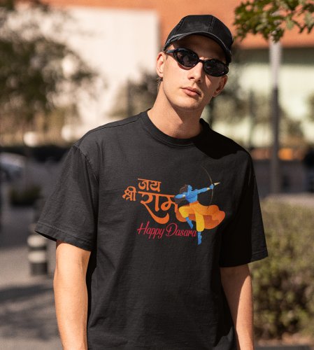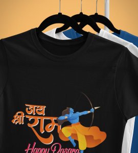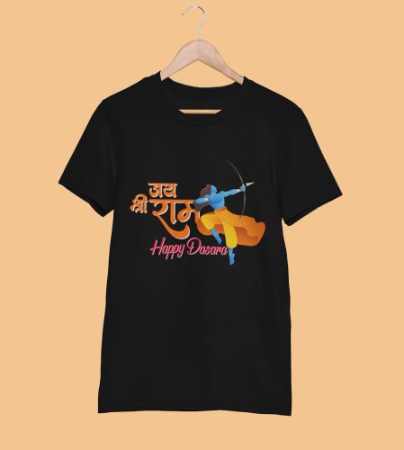 Jai shree ram text printed unisex adults round neck cotton half-sleeve black tshirt specially for Navratri festival/ Durga puja