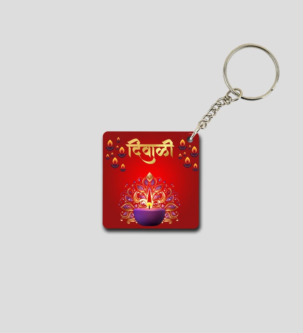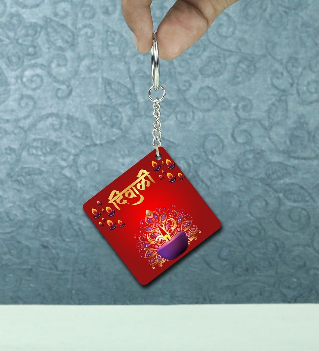 Joy of Togetherness Diwali Slogan Printed Square Keychain
