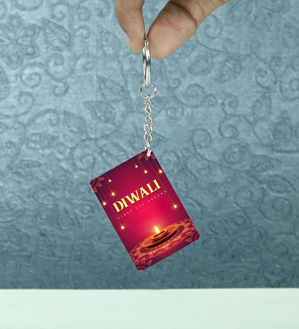 Light up your everyday essentials with this Diwali Decorative Rectangle Keychain! Featuring vibrant festive artwork with traditional lamps and ornate patterns, it's the perfect blend of culture and style. Whether you're gifting or accessorizing, this keychain adds a spark of celebration to your keys or bags. A small yet meaningful way to carry the spirit of Diwali with you!