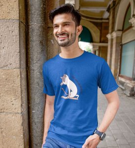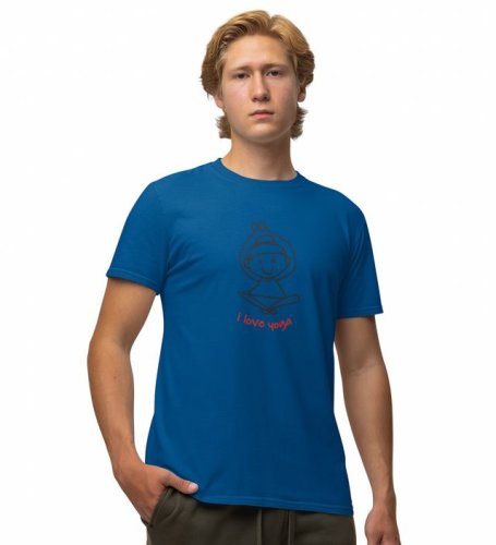 Keep Calm And Do Yoga Blue Round Neck Cotton Half Sleeved Men T-Shirt with Printed Graphics
