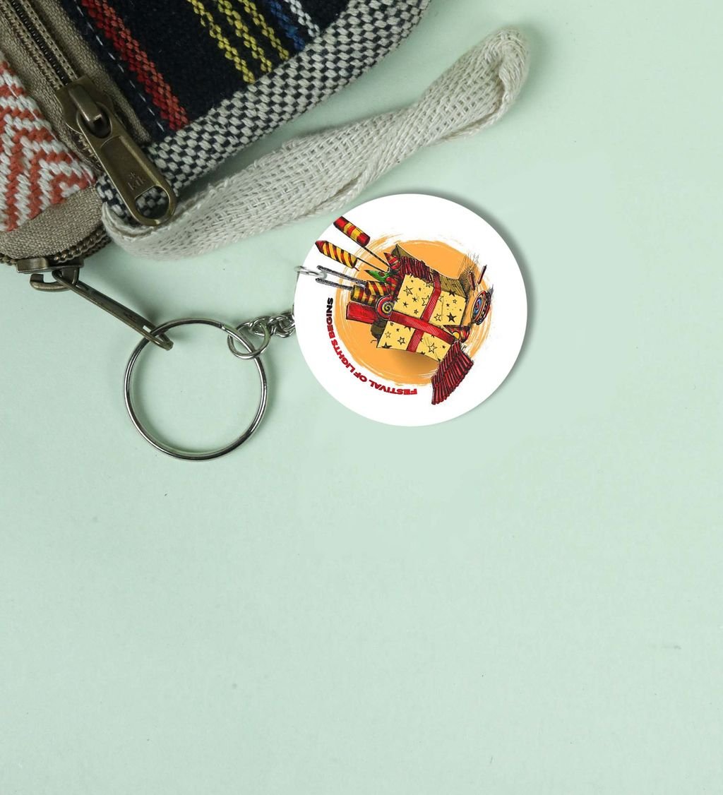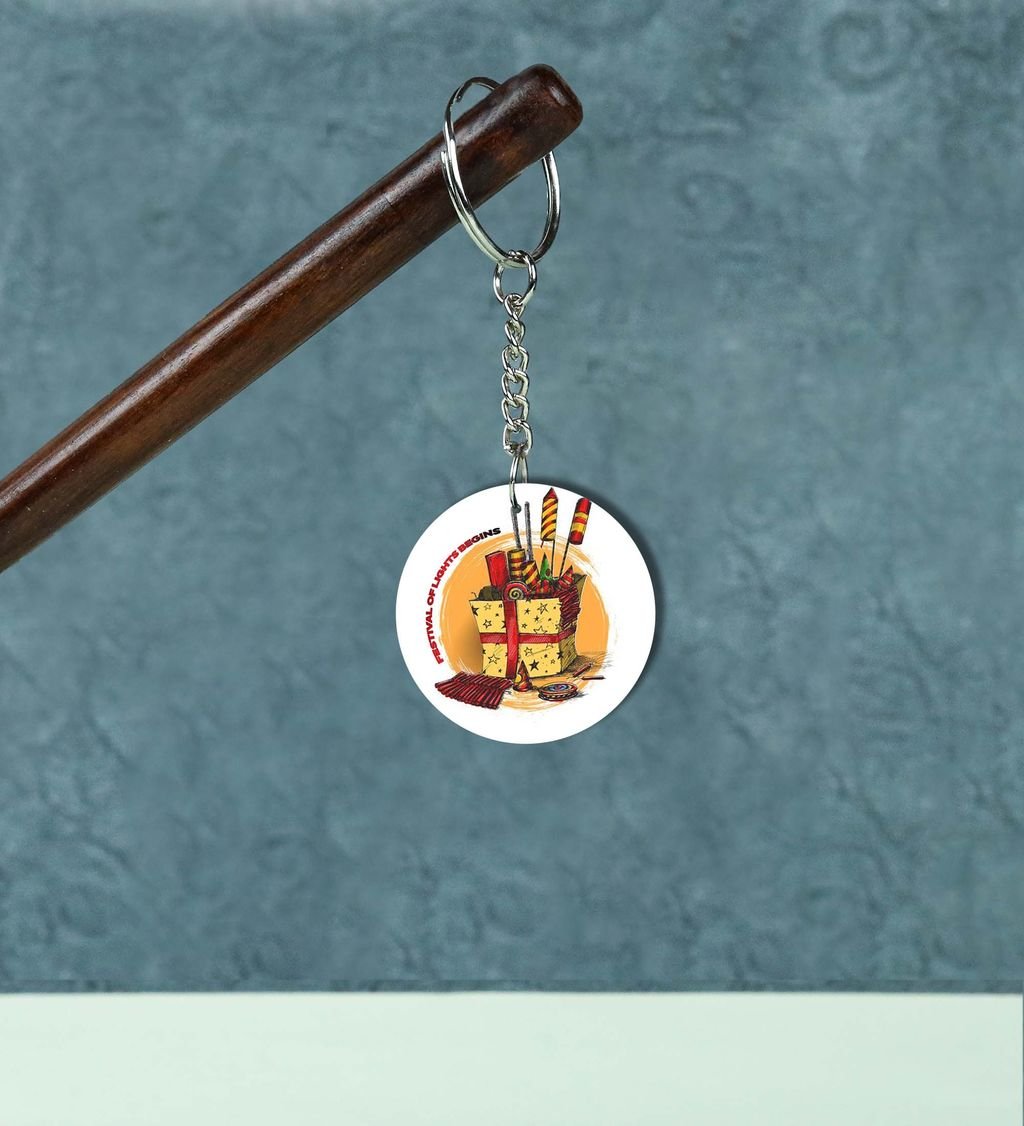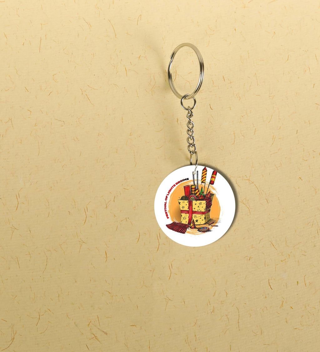 Let the Festival of Lights Begin with Crackers Printed Round Keychain Pack of 2