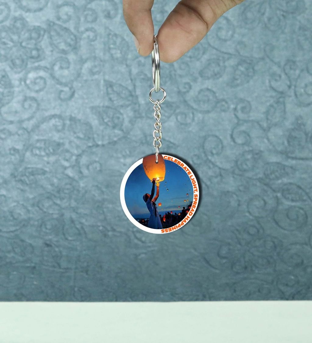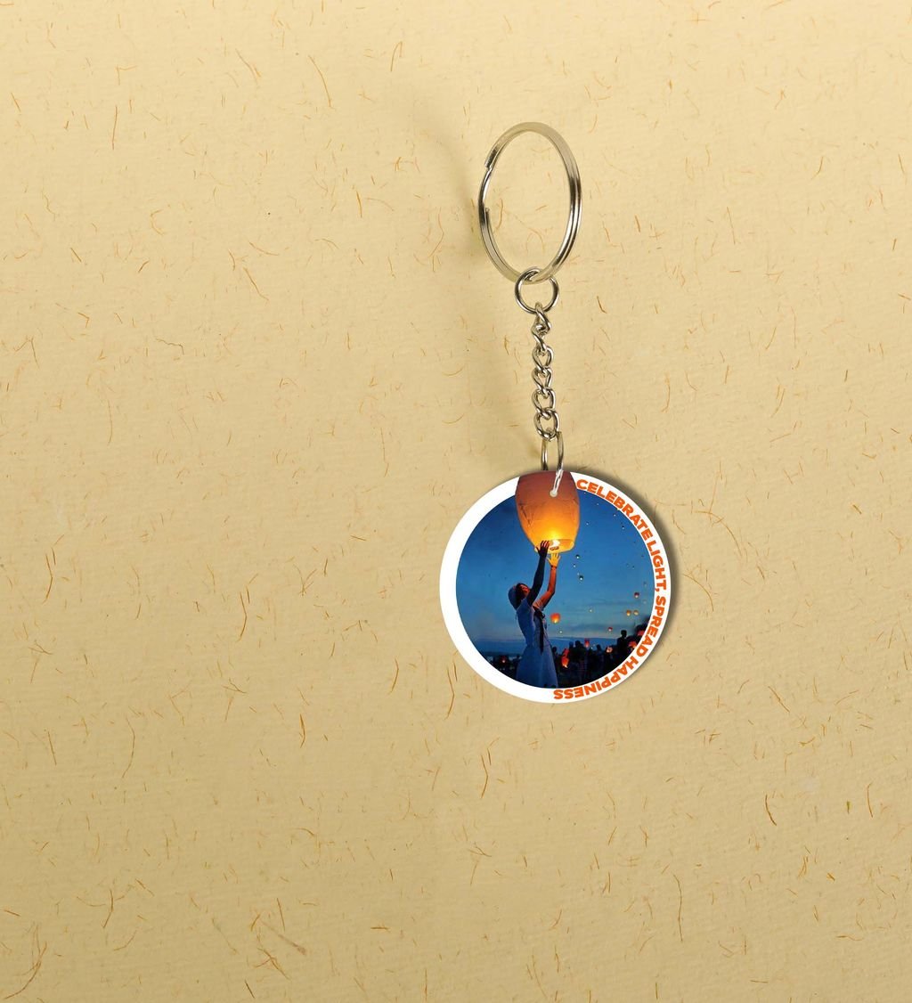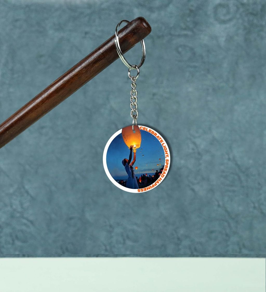 Magical Diwali Night Featuring Lantern Releasing Ritual Printed Round Keychain Pack of 2