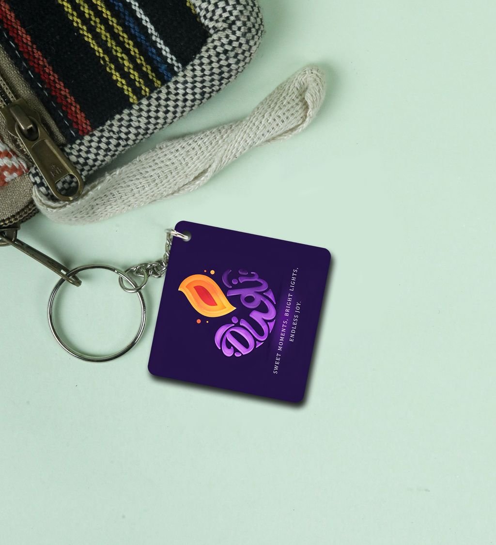 Spread Festive Glow Diwali Slogan Printed Square Keychain