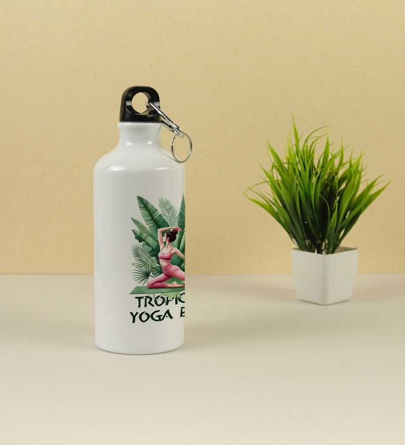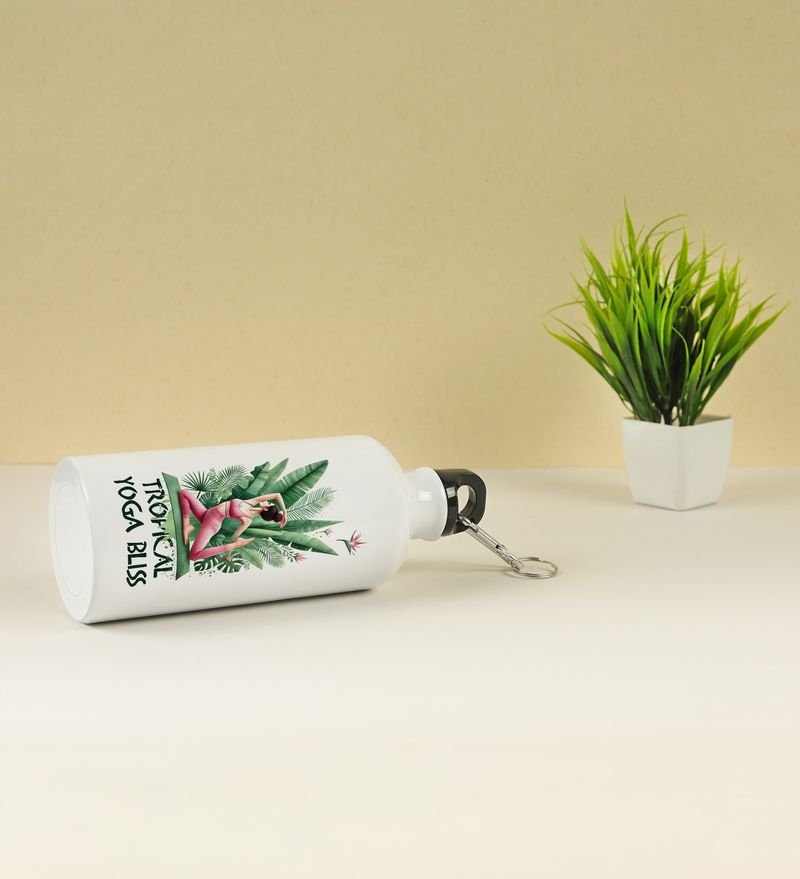 Tropical Yoga Bliss with Botanical Serenity Aluminium Printed Sipper Bottle 600ml