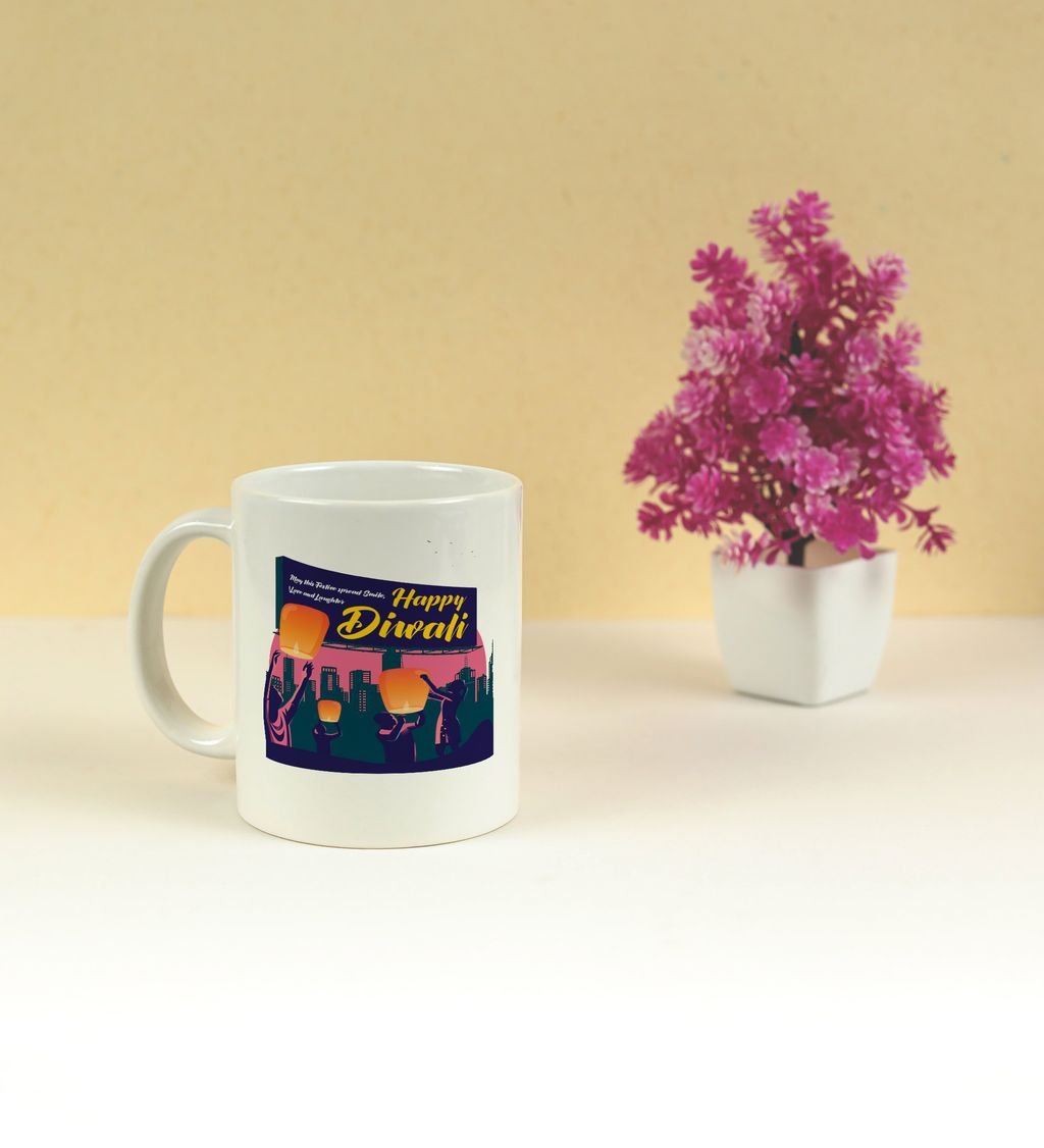 Celebrate the festival of lights with every sip! This beautifully designed Happy Diwali coffee mug adds a festive glow to your mornings and cozy evenings. Featuring vibrant diyas and elegant patterns, it's perfect for gifting or enjoying your favorite brew during the celebrations. Make your Diwali sparkle