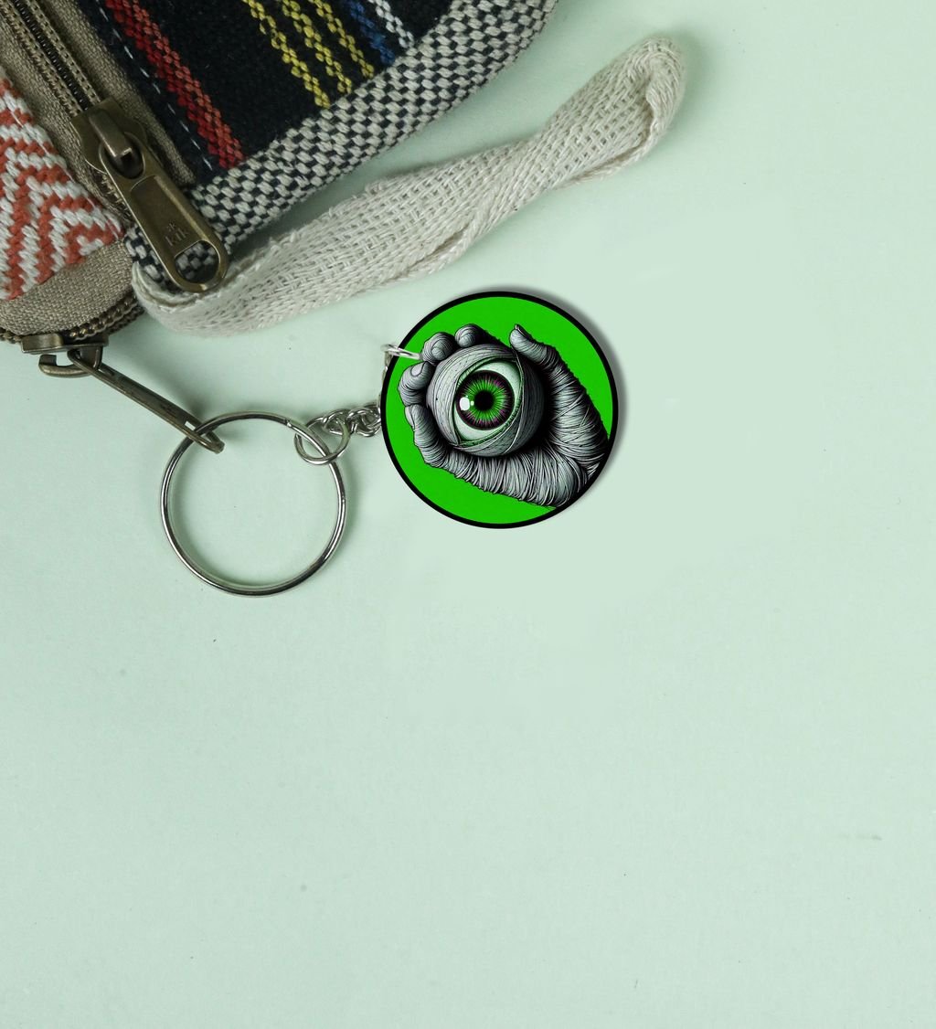 Alien Eyeball Held By Creepy Wrapped Hand Printed Round Keychain Pack of 2