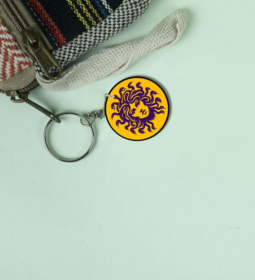 Eye-Catching Mythical Serpent Hair Portrait Art Printed Round Keychain Pack of 2