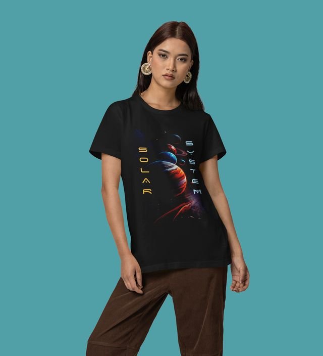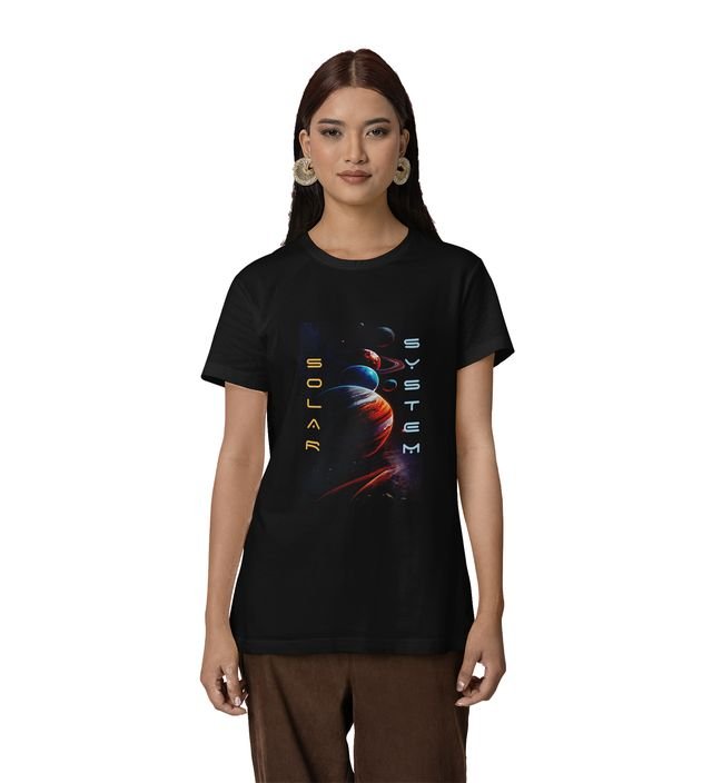 Rotations of Reality: Solar System Graphic Printed Black T-Shirt