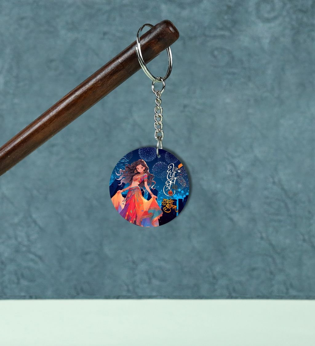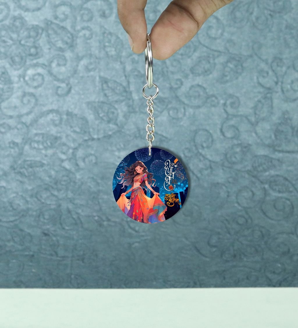 Shining Night Glow Diwali Printed Round Keychain Pack of 2