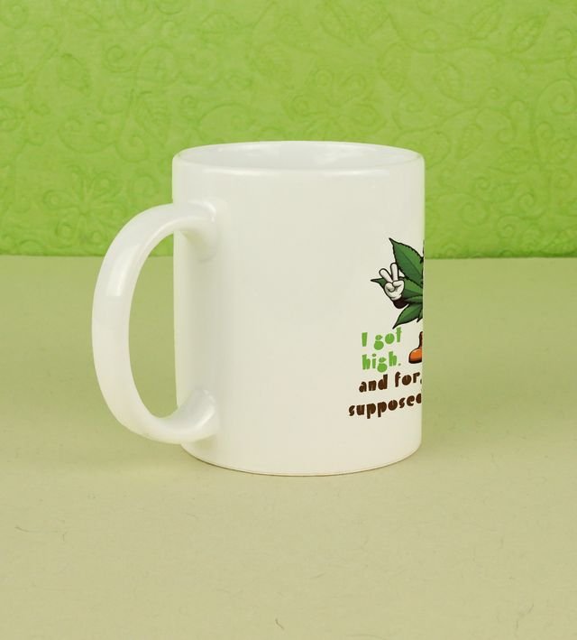 Start your day with a burst of vibrant energy! This printed coffee mug features a psychedelic leaf artwork surrounded by colorful flame-like patterns