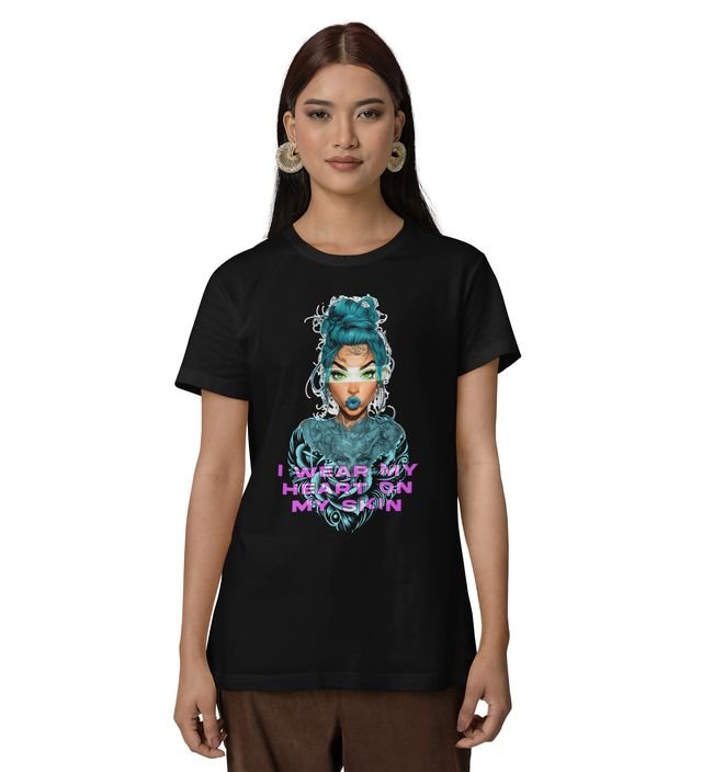 Tattooed Soul: I Wear My Heart on My Skin Graphic Printed Black T-Shirt